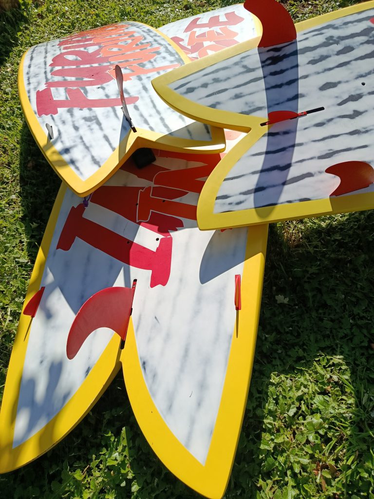 En navigation freeride, sur le plat ou le clapot, n’oubliez jamais que la planche la moins large de la gamme fait 72 cm avec un tail énorme, un peu comme les toutes première planches de Formula Windsurfing des années 2000. Taille des ailerons à l’époque ? en 48 et 55cm !